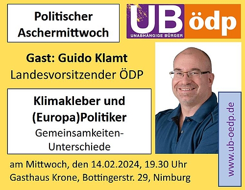 Der ÖDP-Landesvorsitzende und baden-württembergische ÖDP-Spitzenkandidat für die Europawahl am 9. Juni 2024 Guido Klamt beobachtet seit längerer Zeit sowohl „Klimakleber“ als auch Politiker der etablierten Parteien. Dabei entdeckte er das Phänomen, dass beide an etwas kleben: Während die „Klimakleber“ sich auf der Straße festkleben, weil sie sich Sorgen um ihre Zukunft machen, klebten viele Politiker an alten Vorstellungen und Lobbyeinflüssen fest. „Diese Politiker machen sich Sorgen um ihre Pfründe!“ so der Hauptredner beim diesjährigen Aschermittwoch der Kreisverbände Emmendingen und Ortenau der Ökologisch-Demokratischen Partei in Nimburg.
